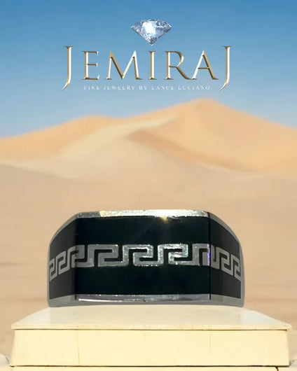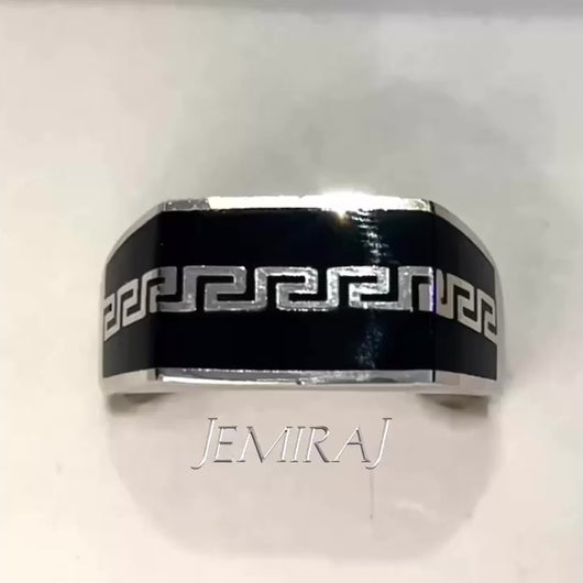 Al Nahr Ring invokes power through structure — sculpted in 925 sterling silver with a bold rectangular face, inlaid with rich black enamel. A flowing silver design breaks through the midnight aura, echoing the endless rhythm of the river Nile.