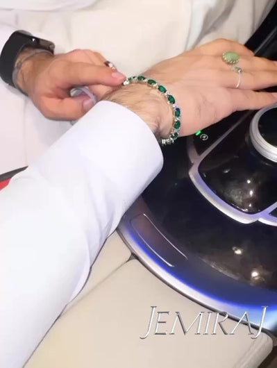 925 silver, set with 16 oval cut cz emeralds and 34 brilliant-cut cz diamonds.